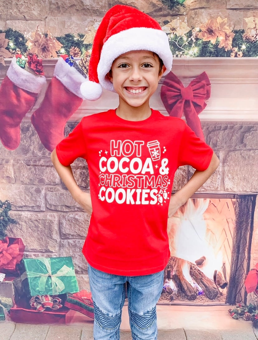 Hot Cocoa and Christmas Cookies Red Top Neutral Boys Girls Big Kids Baby and Toddler Shirt