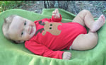 Red Rudolph Reindeer baby bodysuit. Choose long or short sleeves.