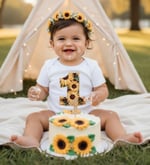 Sunflowers First Birthday baby bodysuit. Choose long or short sleeves.