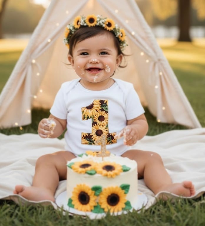 Sunflower First Birthday Baby Bodysuit Floral Sunflowers Girl’s Party Top